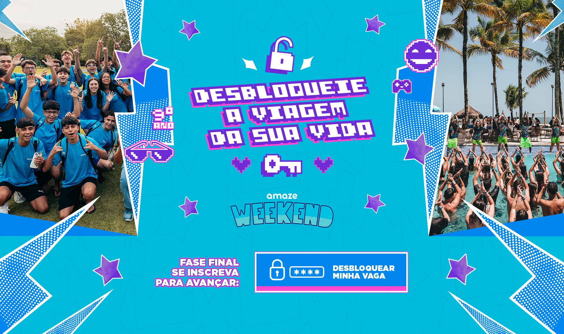Dois dos melhores resorts do interior de São Paulo recebem as viagens Amaze do 9º ano! Piscinas, quadras, tirolesas, festas, natureza e muita diversão fazem parte dessa experiência inesquecível — com toda a estrutura, conforto e segurança que só a Amaze oferece.